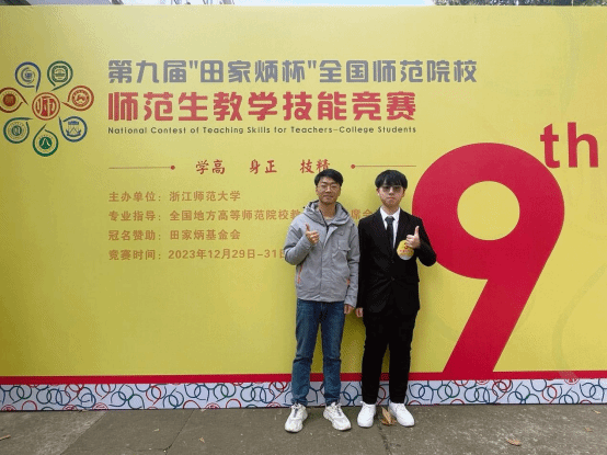 12月31日,第九届“田家炳杯”全国师范院校师范生教学技能竞赛正式在浙江师范大学落下帷幕。我院林千策同学取得佳绩,荣获国赛一等奖!