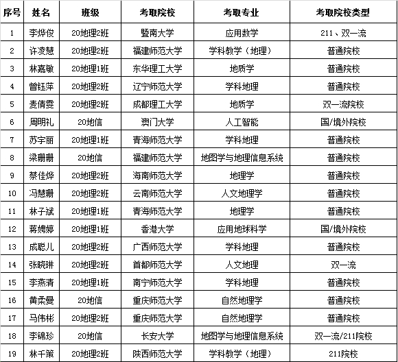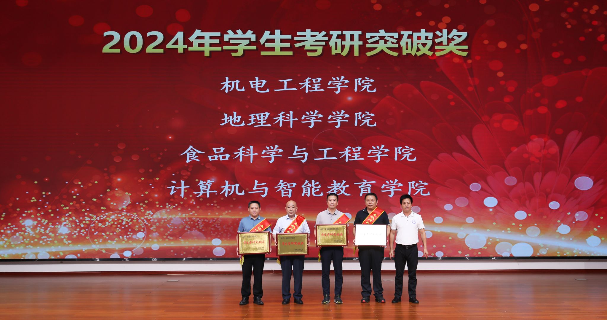 6月14日晚,“卓越岭师”2024年颁奖盛典暨本科生深造工作表彰大会在学校音乐厅举行。学校校长阳爱民,党委副书记林晓敏,华师帮扶队队长卢勃,学校党委常委、宣传部部长刘坤章出席大会,为获奖集体和个人颁奖。我院荣获“2024年学生考研突破奖”,37名学生荣获“2024年考研奖”(具体名单见下表)。