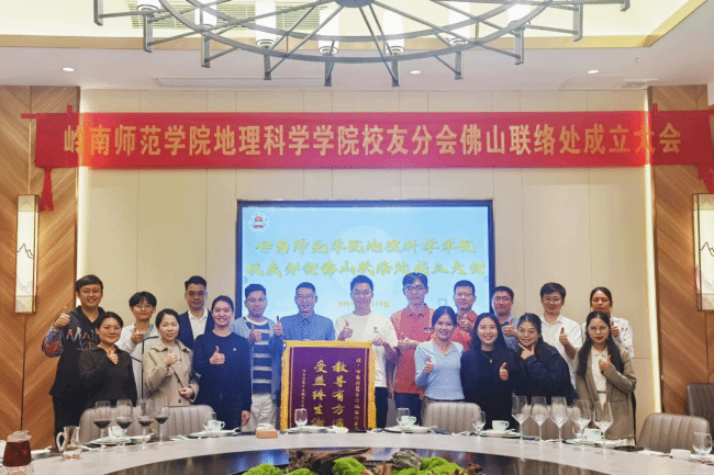 2024年11月19日下午,岭南师范学院地理科学学院校友分会佛山联络处在佛山市顺德区正式成立。学院党委书记全柱和党委副书记王雄艺、副院长尚志海、教师代表及佛山、阳江、广州等地区地理科学专业历届校友代表欢聚一堂,共同见证地科院校友分会佛山联络处的成立。