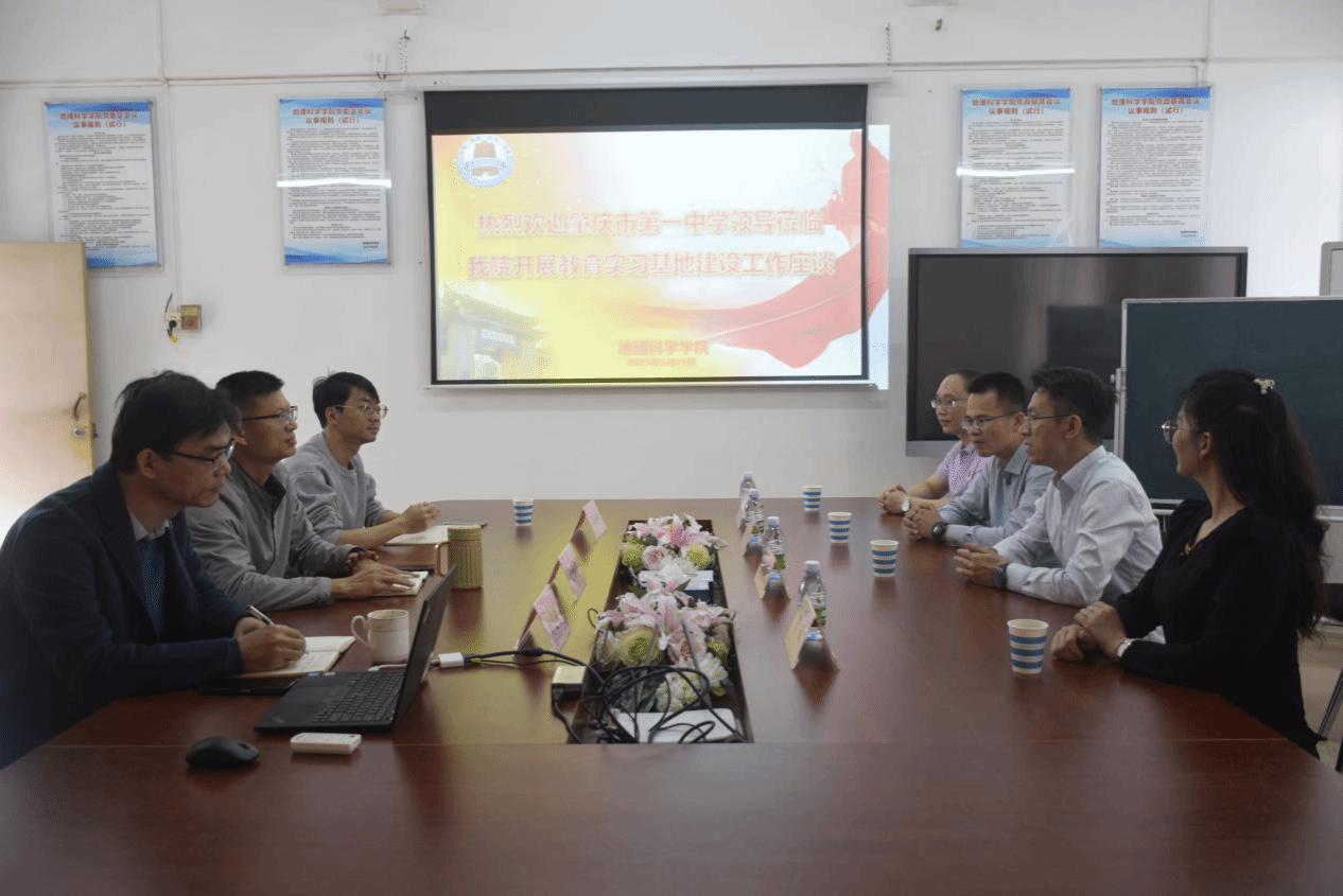 为进一步深化校外教育实践教学基地建设,携手推进师范人才培养事业,3月21日,肇庆市第一中学教育集团党委书记马乃棉,副校长贺丽、李园生,党委办主任朱腾东一行莅临我院开展实习基地建设工作座谈。会议在我院会议室举行,我院党委副书记王雄艺、副院长尚志海及地理科学系主任李成阳参加了会议,共同就实习基地建设等议题展开深入交流。