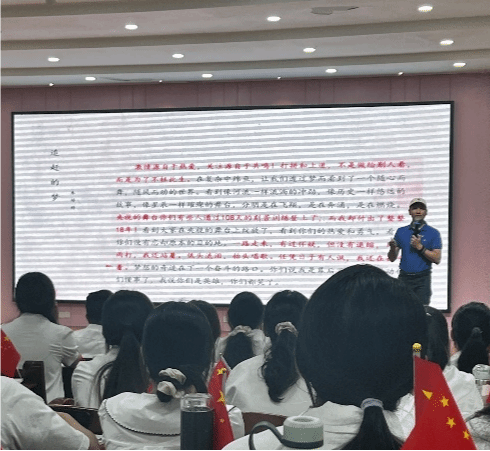 紧接着是音舞院朱培科副院长为新党员们带来“追赶的梦”的专题党课,朱副院长提到我们的激情源于热爱,要保持激情与热爱,要相信岭师的力量,讲奉献,不讲功劳。