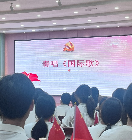 党校培训第一项流程,红歌拉唱。地理科学学院党员们奏唱《国际歌》。