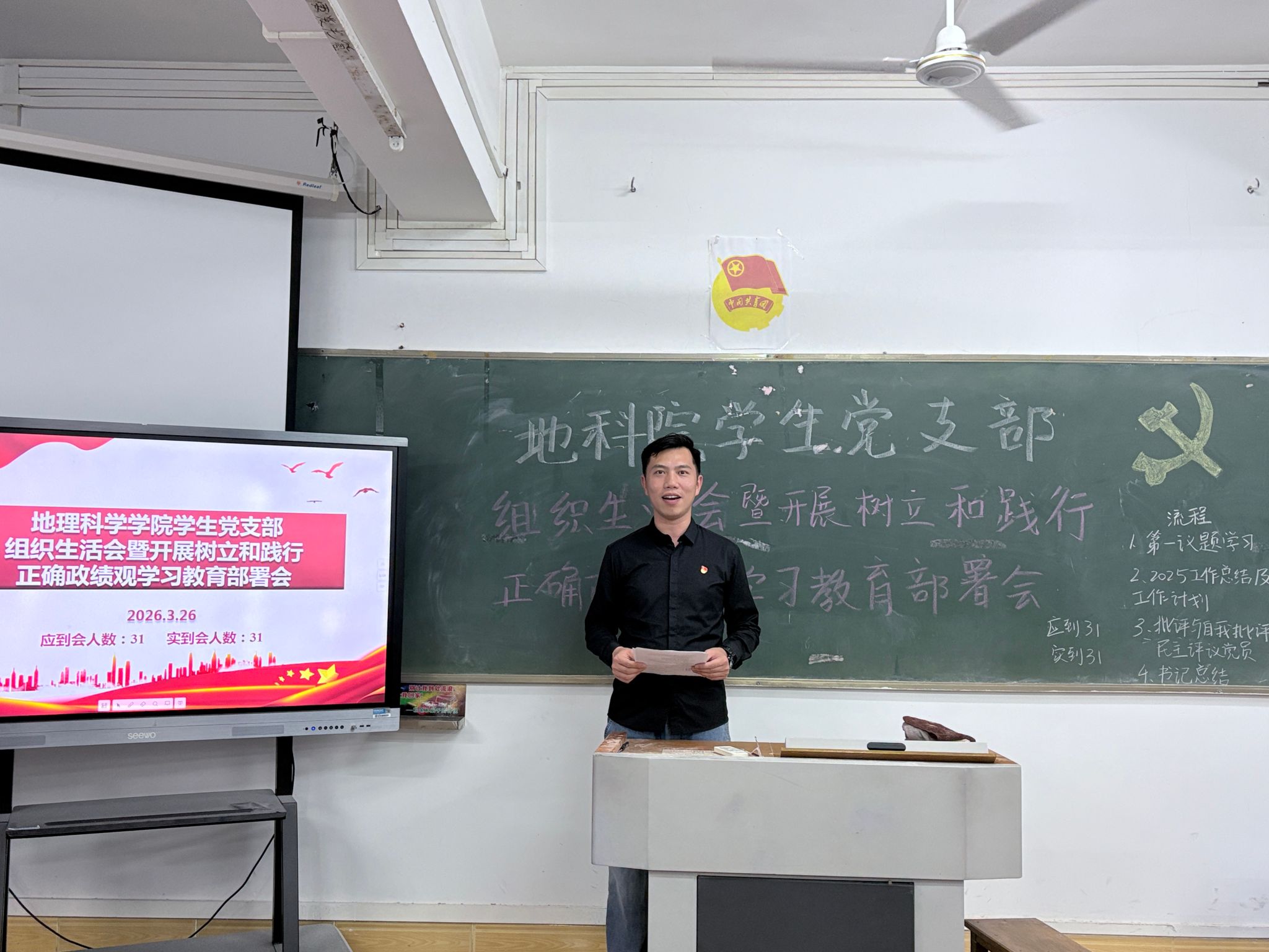 树牢正确政绩观,实干笃行建新功——地理科学学院学生党支部召开组织生活会暨开展树立和践行正确政绩观学习教育部署会