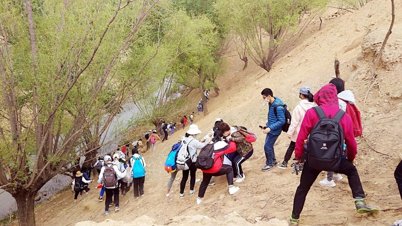 第二天爬黄土高原的时候,更可以说是非常刺(ke)激(pa)了。这过程是个不小的挑战,但因为有身边人的扶持,山也逐渐变得没有那么陡。我们的晓慧小姐姐扭伤了脚,也还是在男生们的照顾下,完好无损地走过来了,真是非常棒棒。她一回酒店就跟我说:“照华扶着我上坡,都到平地了还担心我,一直扶着…这群男生简直太靠谱了…”作为一个被拉过不少次的怂包,这句话亦说出了我的心声——