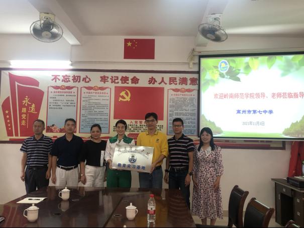 为深入了解地理学院师范生的教育实习情况,确保教育实习工作的有序开展,2021年11月2日—2021年11月24日,由地理学院党委副书记王雄艺、副院长尚志海,实习指导老师陈碧珊、章武、孙中强、成智慧、黄日辉、刘守金等组成教育实习检查组,前往信宜市丁堡职业高级中学、高州第七中学、高州中学、湛江市霞山实验中学和湛江第一中学等地开展教育实习检查、教育实习基地挂牌工作,走访看望实习生。