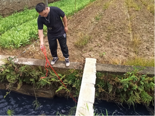 我们这次去鸭曹村采样时,一开始按照师兄教的方法操作,但是当真正去试着采水样的时候却发现这个采样没有像师兄说的那么简单。后面我们自己摸索,改进了采样方法。整个采样过程下来,我觉得累是累了点,晒是晒了点,但是大家聚在一起寻找采样地点,一起讨论、摸索着怎么成功把水打上来的过程,真的是很有意思!