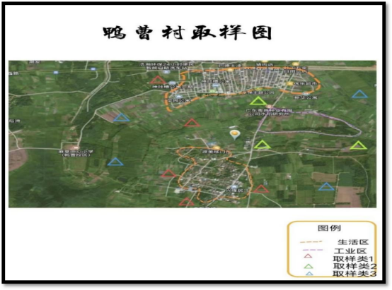 首先,队员们通过网络地图找到了鸭曹村的位置,并在地图上粗略标记了三块拟取样区域,然后分别记录下这三个区域的经纬度,作为到实地后用于寻找获取水样区域的参考。前往鸭曹村后,队员将按照记录好的经纬度找到对应的取样区域,并在取样区域内选取2-3个不同位置的取样点,进行污水的采样。