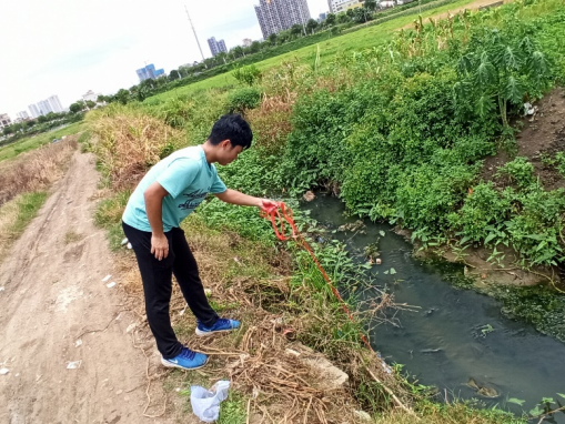 我本来以为外出采样会很辛苦很无聊,结果亲自去采样后才发现其实采样也不像想象中的那么痛苦。由于天气燥热,刚开始的时候我是真的很不耐烦,觉得采个样跑大老远的说不定还会又脏又累。但是后面去采样的时候跟同行队员们一起想办法装水样,那种好不容易才成功装上水样、大功告成的感觉让我有一种功夫不负有心人的感慨。那一瞬间我好有成就感!