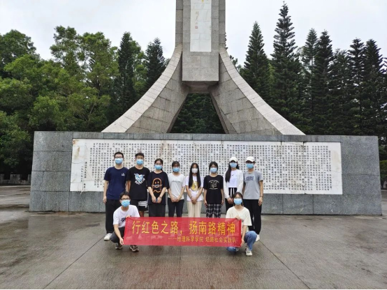 在威严的革命烈士纪念碑下,实践队的队员们认真的游览与学习,对在南路革命中为祖国未来抛头颅洒热血而牺牲的烈士产生了一股深切而浓重的崇敬之情,同时也燃起了对祖国的熊熊爱意。