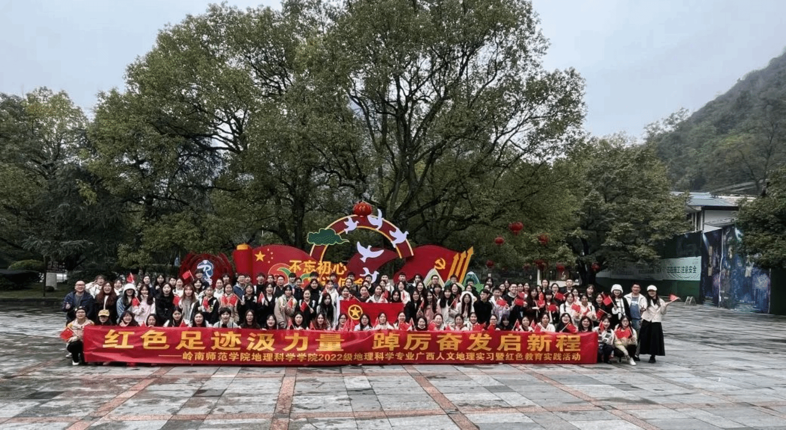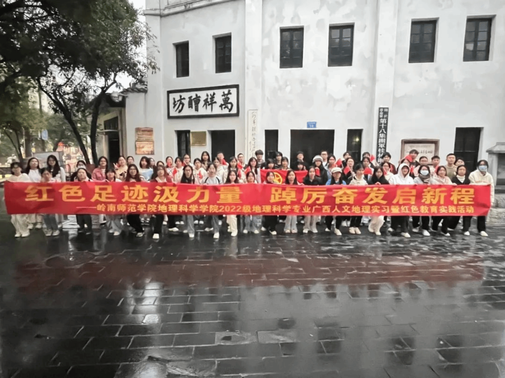据悉,这次人文实习融合了地理科学专业野外实习课程,结合实习地的红色教育资源,策划开展了一系列具有鲜明专业特色的红色教育实践活动。接下来的,岭师地理学子将前往广西柳州,继续找寻红色足迹,探索人文之韵。