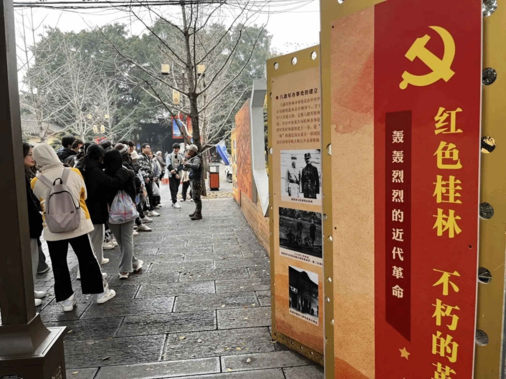 1月13日,老师和同学们到达了八路军桂林办事处纪念馆继续进行红色足迹的探索。在讲解员精彩的讲解下,同学们了解了八路军当时团结各阶层人民抗战;领导、引导桂林抗日文化救亡运动,从而在心中厚植家国情怀。