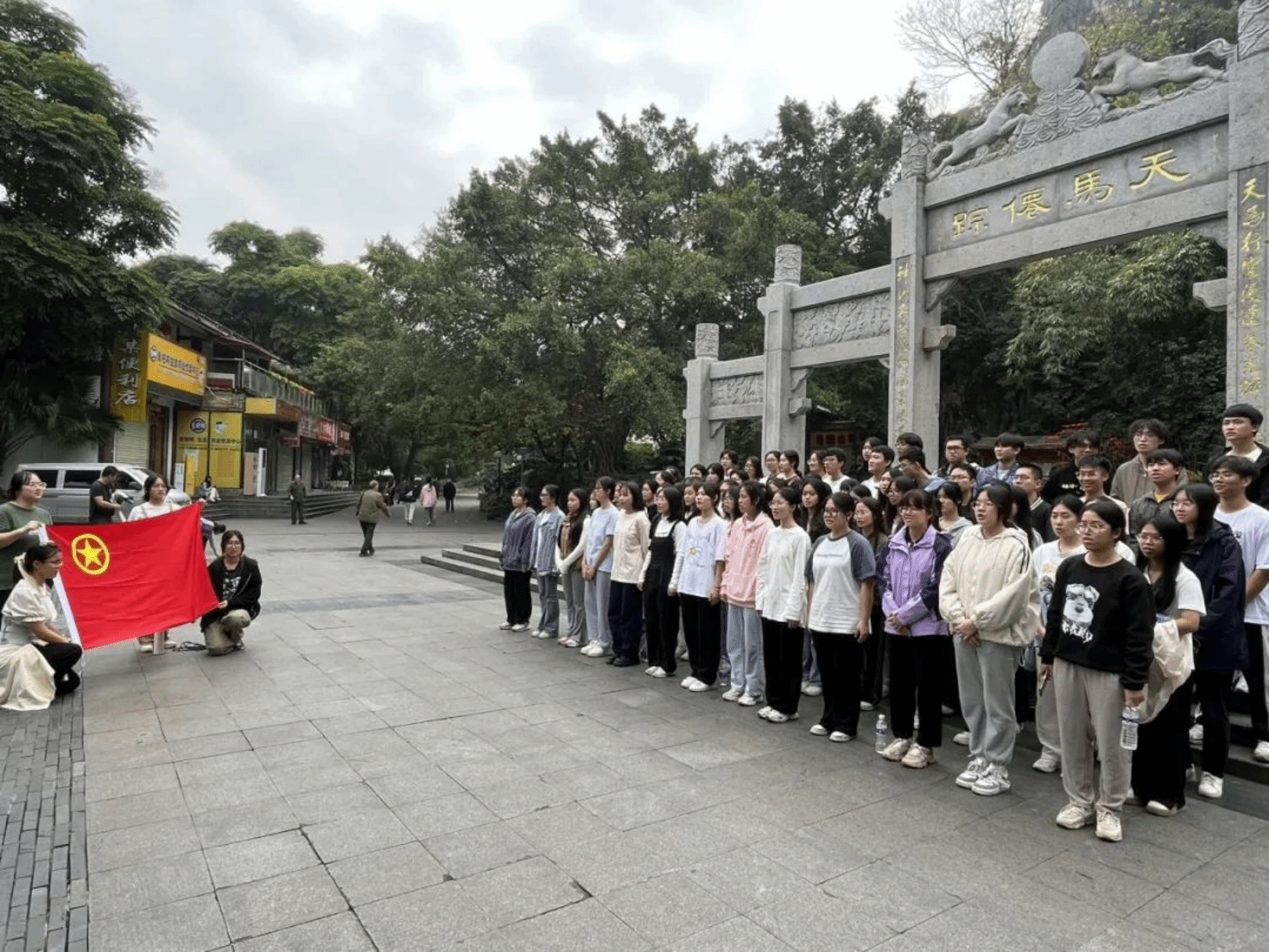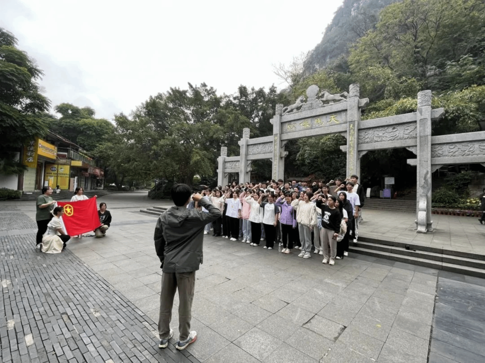 接下来同学们游览了马鞍山,欣赏了当地的特色风光,俯瞰了整个柳州城市的面貌。团支书组织大家进行团日活动,预备党员张径桃还带领同学们重温入团誓词,同学们声音嘹亮、神情肃穆、语气坚定,彰显了同学们走在前列、青春建功的决心。