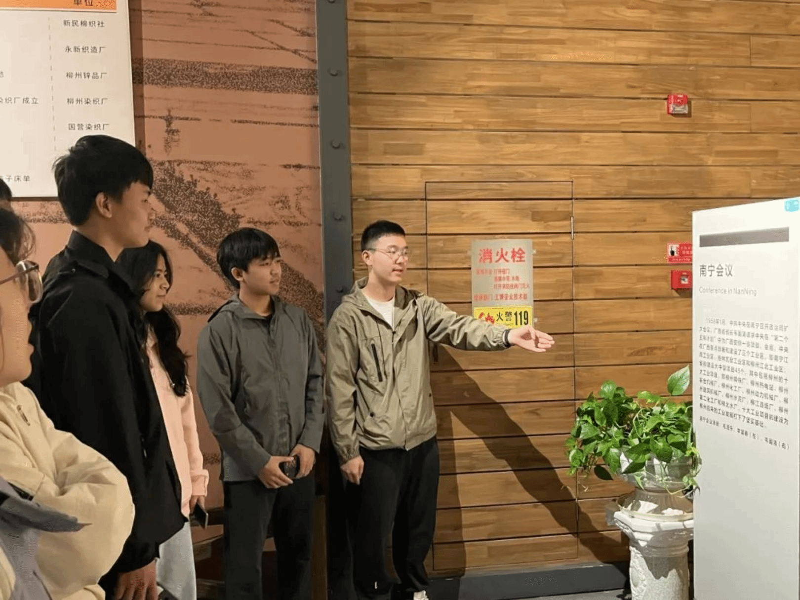 1月16日上午,师生们到达柳州工业博物馆参观学习。其中李增材、张径桃、陈惠霞等同学共同学习了南宁会议。中共中央于1958年1月在南宁召开政治局扩大会议。会后,中央在广西重点部署和建设了三个工业区,包括柳州江北工业区;安排建设大中型项目45个,包括柳州的十大工业项目,这些项目的建设为柳州后来的工业发展打下了坚实基础。