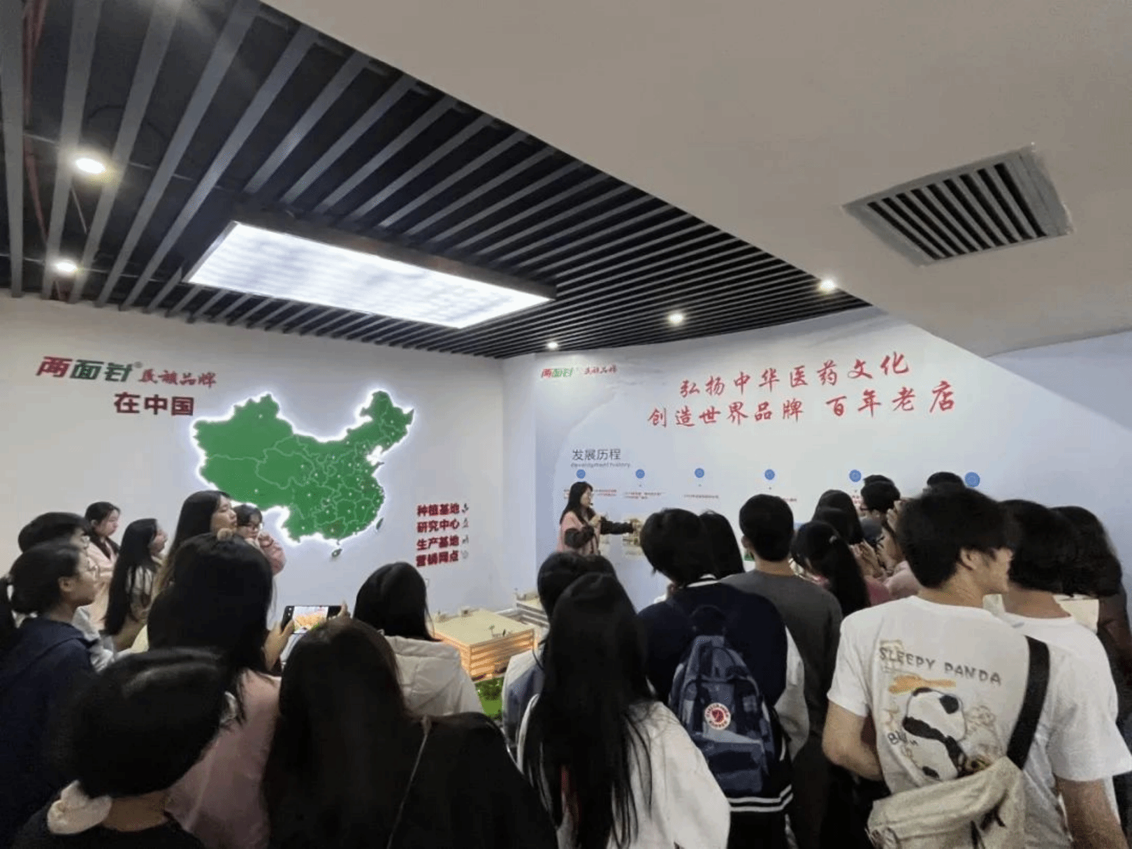 在两面针公司,同学们紧紧跟随讲解员的脚步,认真了解两面针的发展历程。通过讲解员的介绍,同学们了解到两面针公司从成立之初起就始终坚持自主研发、提高创新能力与水平,弘扬中华医药文化,不忘初心,牢记民族企业的使命,为实现中华民族伟大复兴的中国梦而不懈奋斗。