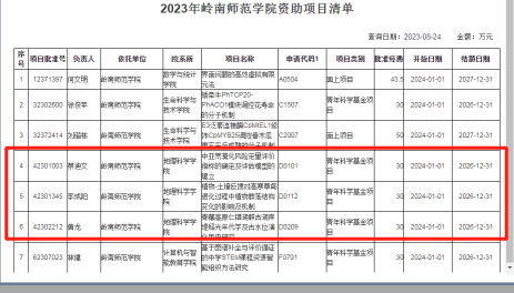 以下为学院获得的2023年度国家自然科学基金资助名单: