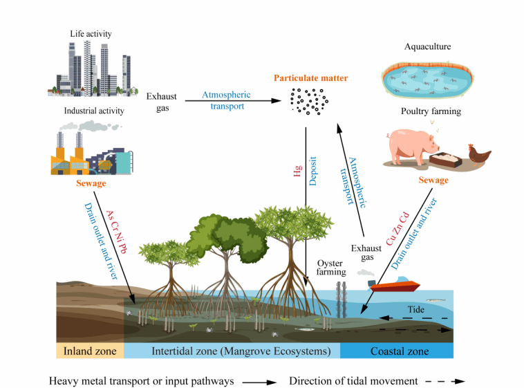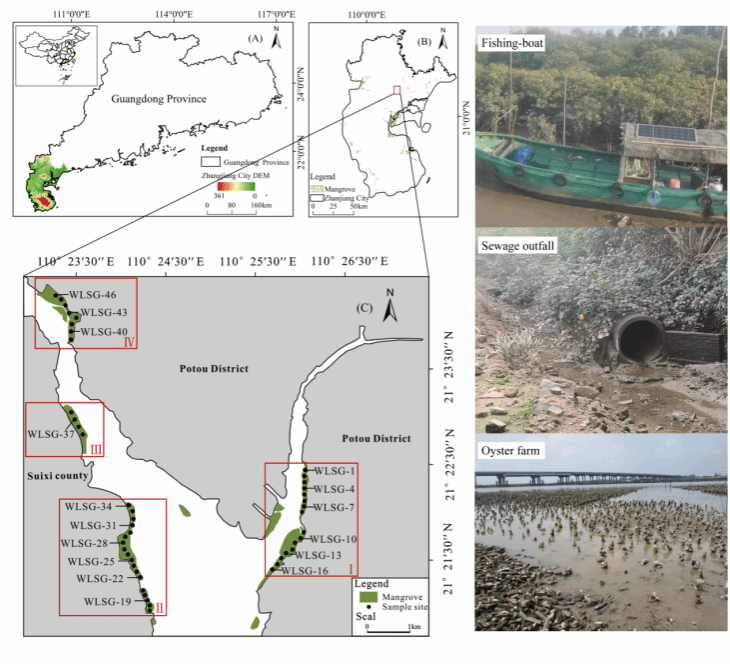 文章简介:红树林是分布在热带和亚热带地区海岸潮间带特有的植被类型。红树林受到陆源包括人类活动以及海域环境信息的叠加影响,因其固有的一些特性,能够大量接受来自潮汐、地表径流等所携带的各类重金属污染物。随着环境污染的加剧和对红树林湿地保护的重视,海岸潮间带成为全球变化与地球科学研究的重要领域,海岸带红树林湿地生态系统的重金属污染及来源解析研究重要性也日益凸显。本研究以雷州半岛五里山港红树林湿地为研究对象,分析了快速工业化和城市化背景下红树林表层沉积物中重金属和类金属(As)的含量特征及污染现状;运用污染负荷指数、内梅罗指数和潜在生态风险指数对研究区重金属和类金属(As)污染程度及潜在生态风险进行评价;结合多元统计方法和APCS-MLR模型,定性与定量方法相结合,对研究区重金属和类金属(As)潜在的污染来源进行识别和量化。