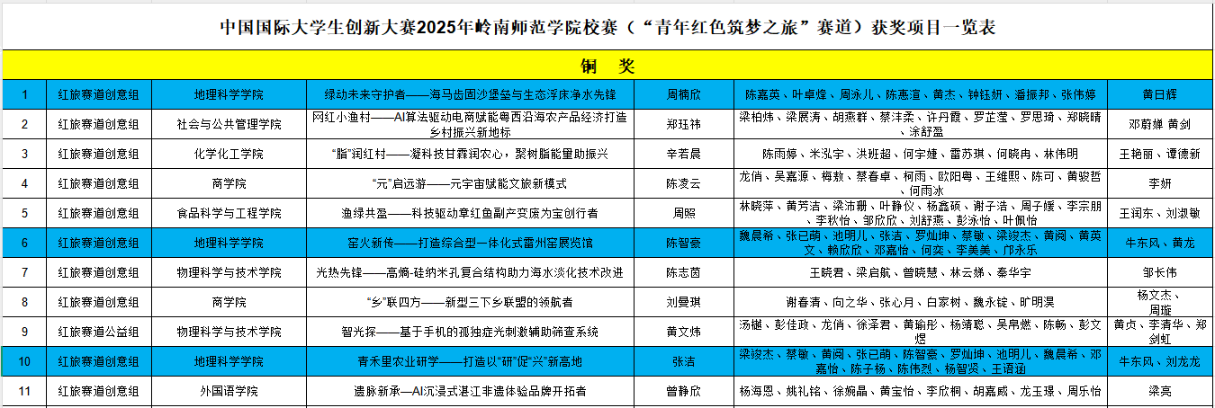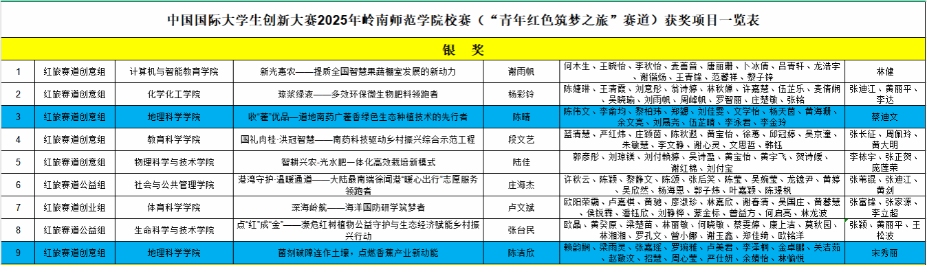 在刚刚落幕的校赛红旅赛道中,我院蔡迪文、宋秀丽、黄日辉、牛东风、黄龙、刘龙龙等教师及陈晴等同学的项目脱颖而出,荣获银奖2项、铜奖3项!