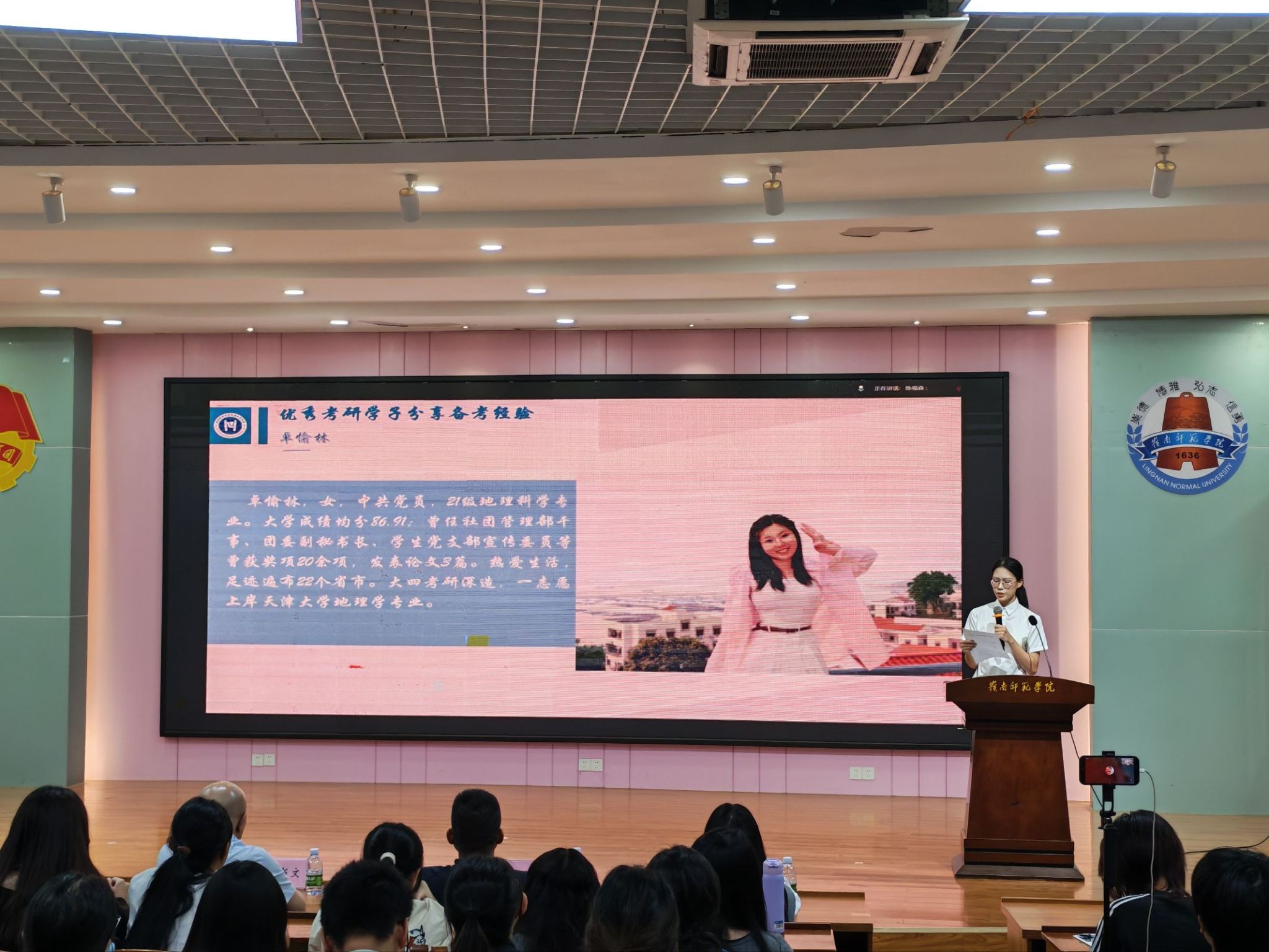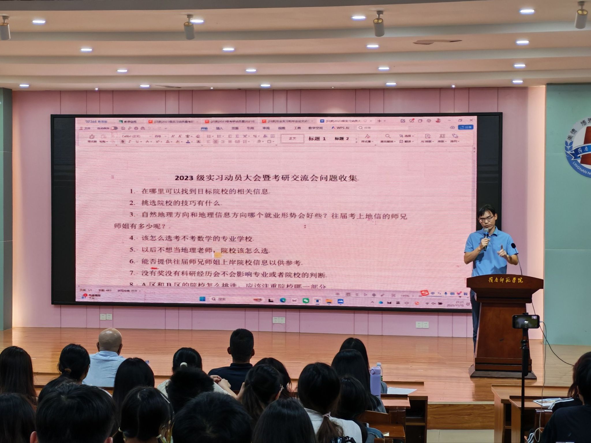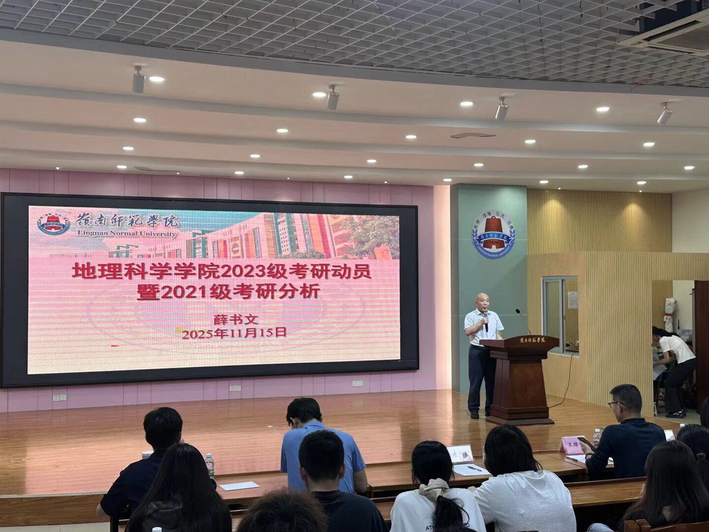 为统筹推进2023级学生毕业实习与考研备考工作,地理科学学院于2025年11月15日在第三教学楼311教室成功举行了“红色岭地·研脉赓续”2023级实习动员暨考研经验交流会。地理科学学院院长薛书文、党委副书记王雄艺、副院长尚志海、2023级辅导员梁津铭和2024级辅导员潘妃妹出席会议,2023级全体学生参会,特邀2021级优秀考研校友卓愉林、林樱线上分享备考经验。会议由学生发展服务中心升学服务部部长苏靖雅主持。