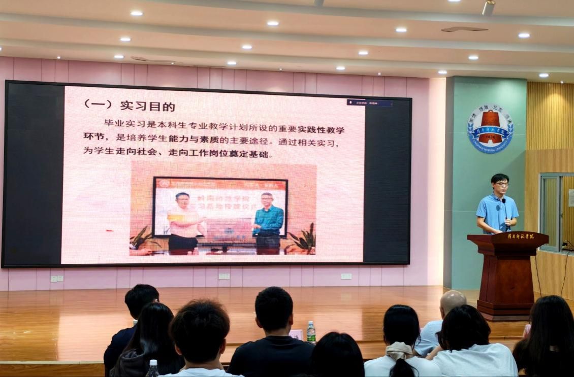 毕业实习是学业对接职业的核心实践,毕业论文是检验学术能力的关键载体,二者共筑毕业质量与职业基础。尚志海副院长细致解读毕业实习工作安排,强调毕业实习至关重要,同学们应认真对待。在毕业论文安排上,尚院长结合2022级论文情况梳理写作时间线、明确具体要求,提醒学生提前规划,确保按时保质完成。