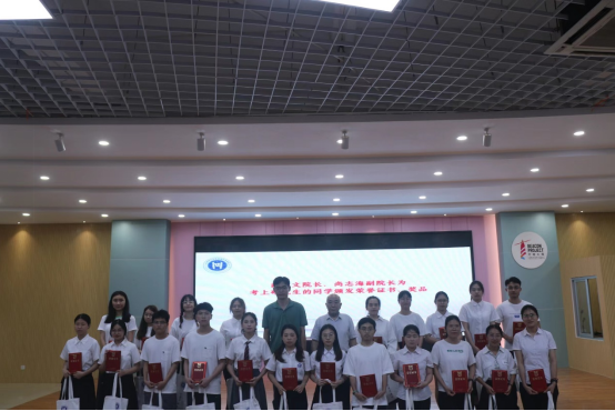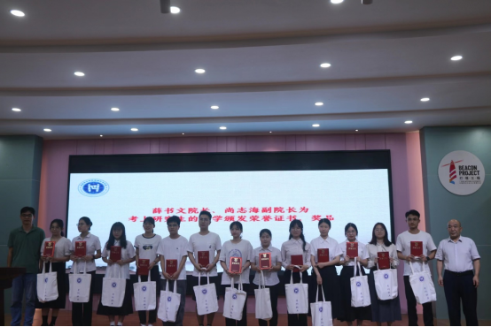 紧接着,薛书文、尚志海为考研标兵和优秀毕业生颁发荣誉证书和奖品;李成阳、杨鑫、高栋为优秀实习生颁发荣誉证书和奖品。
