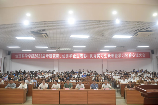 为表彰优秀、树立典型,切实加强学风建设,进一步提高学院学风建设水平,促进学院高质量发展,鼓励广大学生践行“崇德、博雅、弘志、信勇”校训精神及“脚踏实地、求真明理”院风精神,5月7日晚,地理科学学院于第三教学楼311会议室召开2023届考研标兵、优秀毕业生、优秀实习生表彰暨学习经验交流大会。出席本次活动的嘉宾有薛书文院长、王雄艺副书记、尚志海副院长、地理科学系主任李成阳、信息系统系主任杨鑫、学生党支部书记陈水英、学院团委书记梁津铭、毕业班班主任以及考研标兵、优秀毕业生、优秀实习生、2020级全体学生。会议由王雄艺主持。