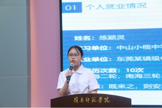 随后,三位优秀实习生代表练颖灵、林小娟、黎衍祚依次上台发言。他们从如何提高工作业务能力、加强人际沟通、提高抗压能力等方面进行实习经验分享。