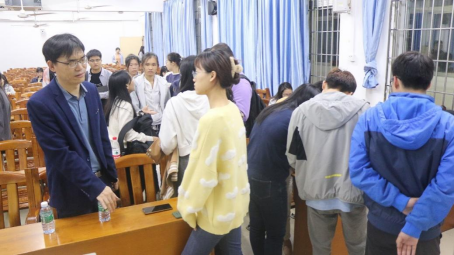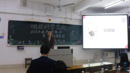 在交流答疑的环节上,各指导老师热情且耐心地解答同学们各种困惑。其中,19级师兄张志浩还主动上台做了经验分享。他结合自己的自身经历,告诫师弟师妹们要坚定自己的考研目标,不要轻易放弃。