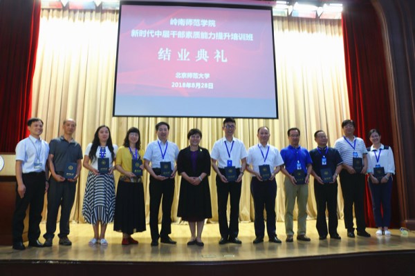 岭师新闻中心北京电:8月28日,我校新时代中层干部素质能力提升培训班结业典礼在北京师范大学辅仁校区礼堂举行。51位学员接过结业证书,表示要学以致用,全力履职,决胜2020!