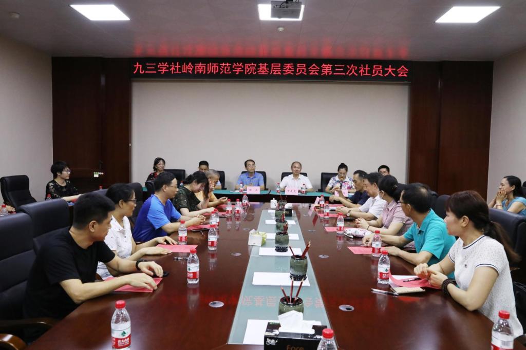 6月21日,九三学社岭师基层委员会在岭南师范学院燕岭阁工会会议室召开第三次社员大会。九三学社湛江市委会副主委银昌、专职副主委戴军、学校党委常委、统战部部长邓逢光,中共湛江市委统战部四级调研员黄中能以及学校各民主党派代表出席会议。会议由戴军主持。