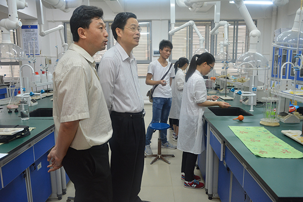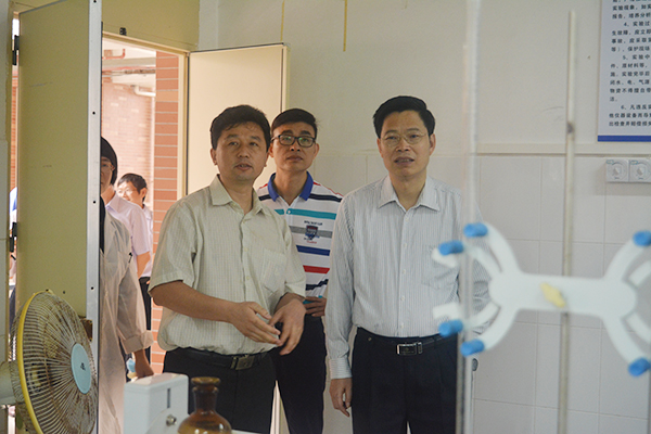 罗海鸥一行走进化学化工学院的实验室,认真察看了实验室仪器、卫生状况以及学生实验现场,询问实验室的总面积、实验室利用率等情况,了解化学化工学院的学科建设和教学成果。罗海鸥提出要以新的发展理念来引领学院的建设和发展,不断解决实验设备相对陈旧和不足等困难。特别是看到第四教学楼公共地区因维护不到位形成卫生死角时,他指示相关职能部门加强管理,及时维护学校的公共场所整洁。