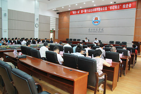 岭师新闻中心讯:“构建大学文化的过程,本质上就是党建育人的文化过程。我们要积极探索高校党建育人的文化路径。”在5月6日下午举行的我校“两学一做”第一期干部培训班开班动员暨“书记项目”推进会上,学校党委书记罗海鸥主讲培训第一课,围绕“以文化人、以境育人——高校党建育人的文化路径”主题,与各二级党委(党总支)正副书记、机关党委各支部书记、第一期培训班的全体学员进行了交流探讨。