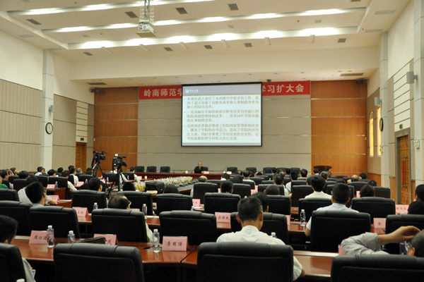 岭师新闻中心讯:岭南五月,凤凰花开。5月16日上午,我校在国际会议厅召开党委理论学习中心组学习扩大会,国家教育咨询委员会委员、中山大学原校长黄达人教授应邀莅校作题为《关于高水平大学建设的一些思考》的专题报告。学校党委罗海鸥书记主持报告会。