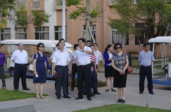 会后,唐仁郭一行在罗海鸥、黄达海等陪同下参观校园,正在我校交流的韩山师范学院原副校长庄东红一行4人也一同参观。罗海鸥亲自向他们介绍校园文化建设理念和文化景观建设思路,在移步换景中阐释了我校构建的高品位校园景观和文化环境。唐仁郭、庄东红等领导对我校文化建设规划和景观建设成果高度赞赏,认为很好地体现了大学文化的精气神,实现了党建与文化建设的深度融合。