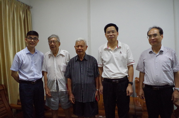 在学校关工委办公室,罗海鸥、黄达海一行与温胜新、谭笑两位退休老党员开怀畅谈。温胜新老师今年82岁,精神矍铄,退休前曾任学校党办主任、组织部部长,是一位有着58年党龄的“老党员”,他忆谈起在学校工作的点点滴滴,表达了对学校加快建设发展的欣慰和期望。88岁的谭笑老教授笑言自己是“新党员”,虽然自20岁起就想加入中国共产党,但由于各种原因一直没有实现,后历经半个世纪的追求,终于在70岁时圆了入党梦,成为光荣的共产党员。谭笑老师平常喜欢走校园,时刻心系着学生的成才成长。