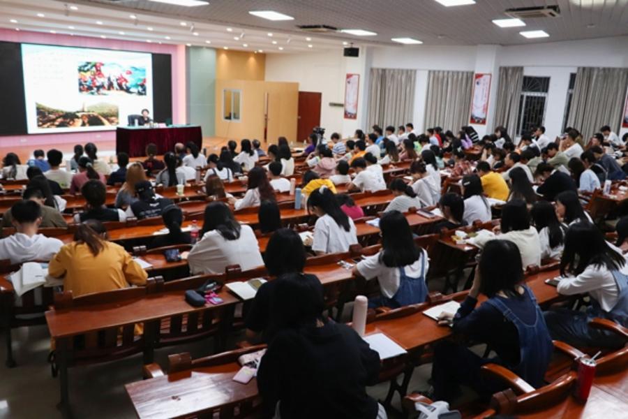 “岭南师范学院历史发展中,也谱写了特有的精神谱系,形成了特色鲜明的书院精神、革命精神、奉献精神、新时代岭师人精神。”兰校长从岭南师范学院的起源雷阳书院,到学校师范教育的开端、独立师范教育的创办、高等师范教育的兴起、高等师范教育的发展、高等师范教育发展的新时代几个方面,讲述了岭南师范学院的历史沿革,指出岭南师范学院在悠久的办学历程中,谱写了以重德尊师、勇于创新、戒恶向善、严谨治学的书院精神;谭平山、黄学增、黄其炜等校史人物为代表的革命精神;学校始终坚守师范、坚持师范教育特色,以国家之复兴,社会发展为己任所展现出的奉献精神;校训崇德、博雅、弘志、信勇蕴含的新时代岭师人精神为特质的精神谱系。并通过一人、一岛、一封信的故事分享了这些精神在岭师人身上的传承和发扬。