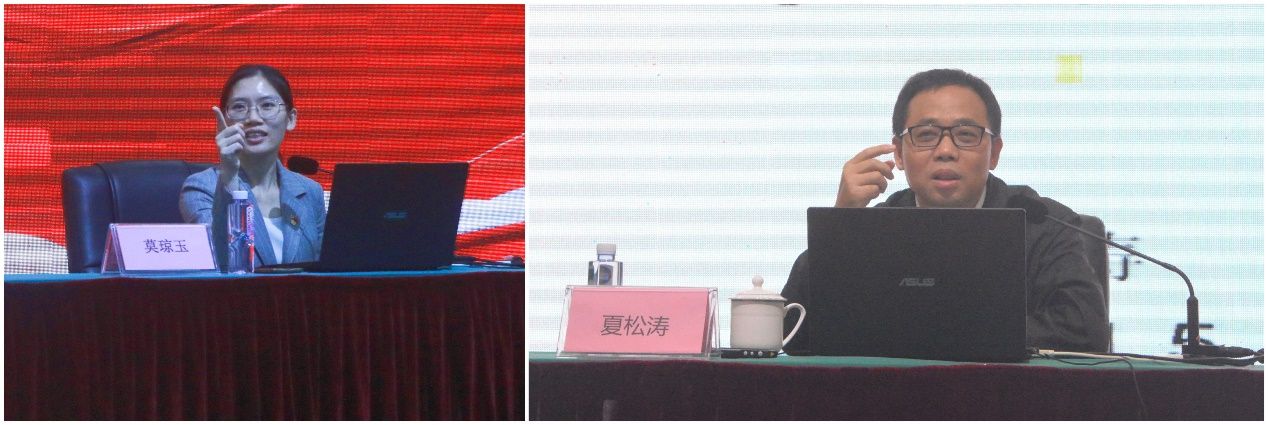 机电工程学院党委书记莫琼玉、马克思主义学院副院长夏松涛教授讲话
