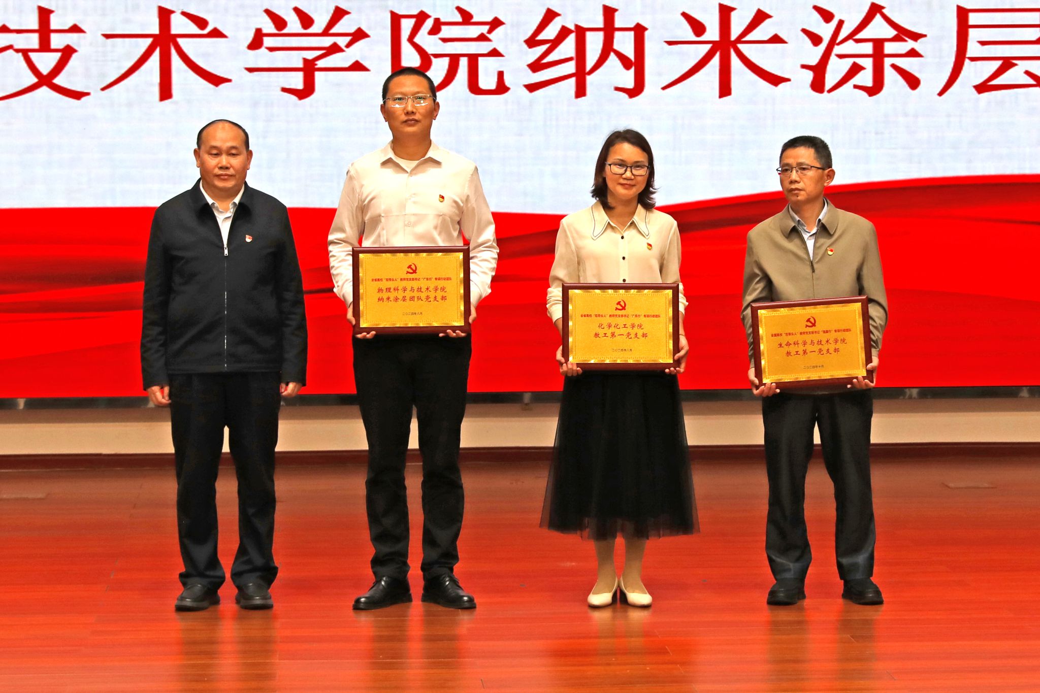 会上,阳爱民、林晓敏为2024年组织统战工作先进集体颁发牌匾。生命科学与技术学院教工第一党支部被确定为全国高校“双带头人”教师党支部书记“强国行”专项行动团队;化学化工学院教工第一党支部、物理科学与技术学院纳米涂层团队党支部被确定为全省高校“双带头人”教师党支部书记“广东行”专项行动建设单位;生命科学与技术学院党委入选广东省“全省党建工作标杆院系”培育创建单位;物理科学与技术学院纳米涂层团队党支部、化学化工学院教工第三党支部和体育科学学院社体系教工党支部入选广东省“全省党建工作样板支部”培育创建单位。