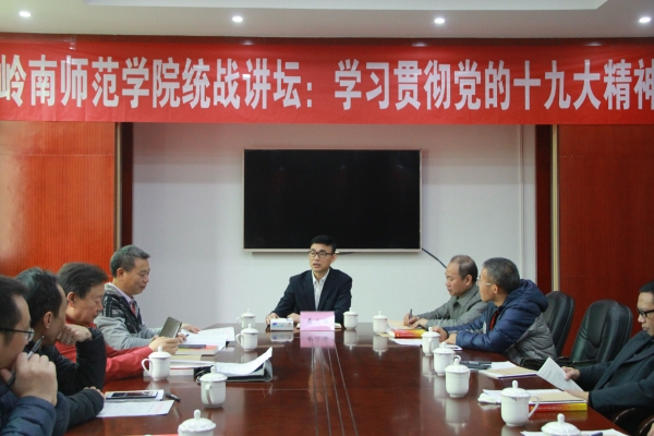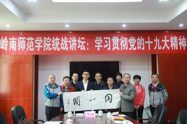 会上,学校党委统战部部长邓逢光作题为《新时代新使命新思想新征程——党的十九大精神解读》的学习报告;民革总支主委张卫国、致公党支部主委潘滨分别谈参加湛江市民主党派骨干“学习十九大报告”培训班体会;各与会代表谈学习党的十九大精神心得。