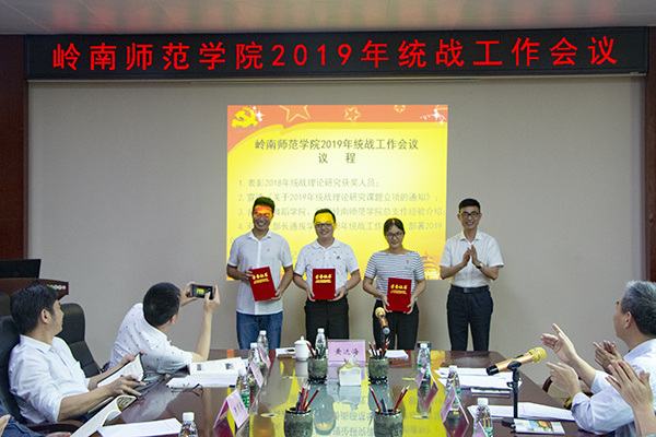 学校党委组织部、统战部部长邓逢光总结了学校2018年统战工作情况,部署2019年的统战工作。音乐与舞蹈学院统战委员、院长孙建华教授作为二级党委(党总支)代表作统战工作经验介绍;民盟岭南师范学院总支副主委刘晚苟教授代表学校民主党派组织、统战团体介绍工作经验。会上还表彰了2018年统战理论研究获省级奖人员,通报了2019年统战理论研究课题立项情况等。