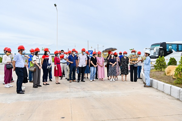 一行人先后参观了中科炼化展厅、全厂管控中心、现代化立体库、景观放流池等。通过实地参观和互动交流,详细了解了中科炼化在湛江落地建设发展过程以及企业优势、绿色环保理念、经济效益等,从中感受了中科人艰苦奋斗、践行以“苦干实干、三老四严”为核心的石油精神和以“求真务实、精细严谨、家国情怀、事争第一”为主要内涵的石化传统。大家对中科(广东)炼化有限公司生产的高度信息化、智能化赞不绝口,深刻感受到技术创新的力量。