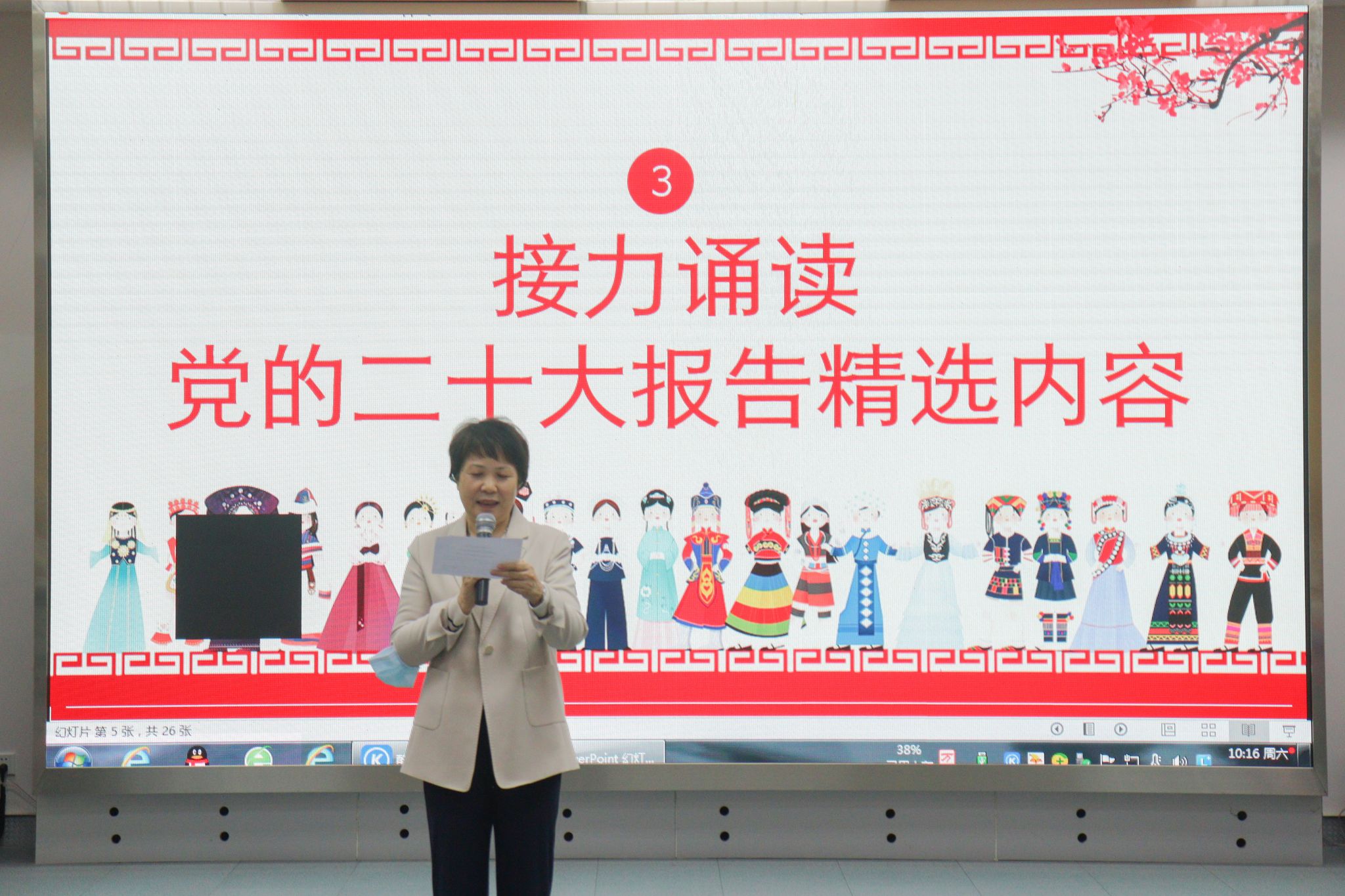 学校党委书记兰艳泽领学二十大报告内容(罗景柔 摄)