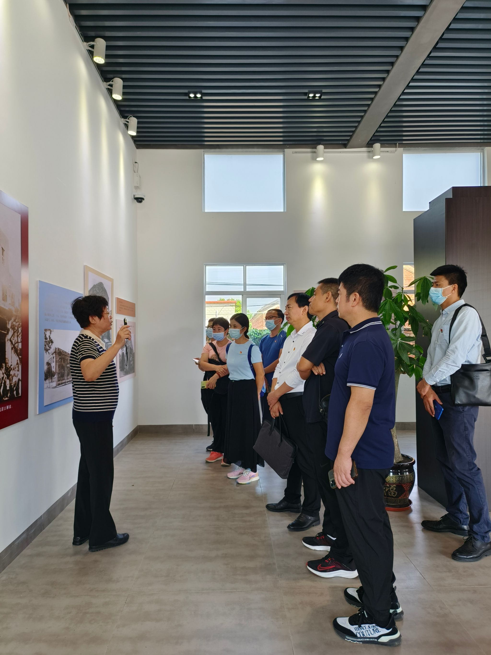 接着,大家步行走进另一个抗日战争革命根据地—陈川济村,感受着革命村庄的浓厚红色氛围和新农村建设的活跃气息,大家最终停驻在由陈超将军出资建成的红色南路(陈川济)教育基地跟前。陈超将军的侄女黄健女士领着大家走进水秀居和红色主题展览馆,为大家介绍陈家作为南路党组织的地下交通站、情报站和接待站,在外公陈昌甫的支持下陈家子女用行动支持和帮助党和国家的革命事业的所做出的贡献。