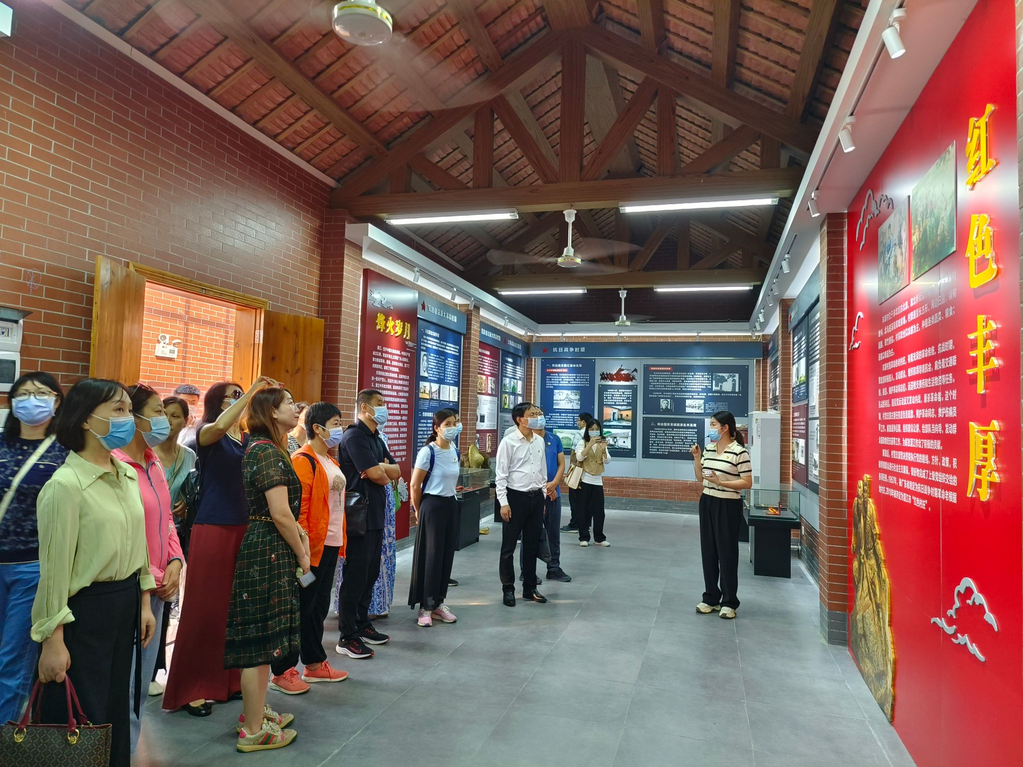 全体人员第一站来到红色南路(丰厚)教育基地,听讲解员讲述了丰厚村当年的红色故事和现在的新农村建设,追寻丰厚村人民在中国共产党带领下进行革命斗争的红色印记。大家了解到丰厚村作为中共广东南路特委在抗日战争和解放战争时期的重要地下交通站,在艰险的环境中支持党的斗争达十年,从来没有一个人泄露过秘密,为解放湛江做出了重要贡献。大家听完均肃然起敬,深受感动,表示将倍加珍惜先辈们用鲜血和牺牲创造的和平生活,将继承先辈的吃苦耐劳、英勇无畏、团结斗争的精神,在自己的岗位上做出积极贡献。