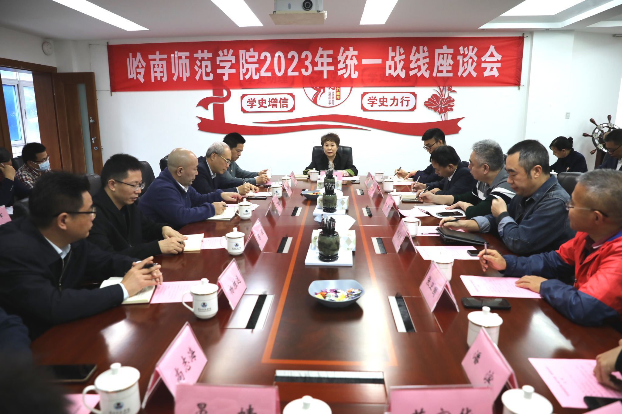岭师新闻中心讯:2月24日,学校在二号会议室召开2023年统一战线座谈会,会议通报了2022年学校校情、统战工作情况和2023年工作设想,学校各民主党派、知联会、留联会主要负责人、骨干代表围绕学校高质量发展建言献策。学校党委书记兰艳泽出席会议并讲话,党委副书记黄达海主持会议。