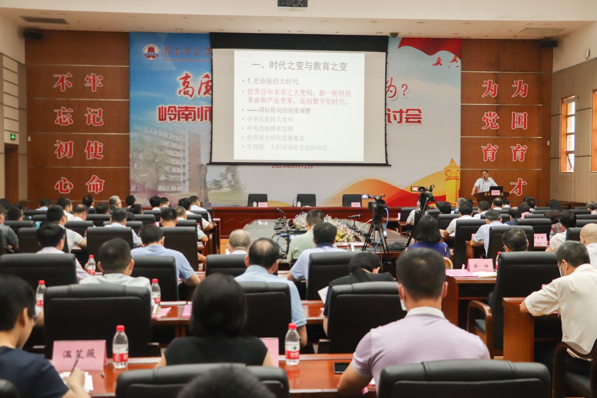 “时代在变,我们必须跟着变!”“在深入开展学习贯彻习近平新时代中国特色社会主义思想主题教育之际,探讨岭师高质量发展,正当其时、意义深远。”兰艳泽作了《全面贯彻党的二十大精神 凝心聚力推动学校高质量发展》总结讲话。她指出,一要高站位把握高等教育高质量发展的现实逻辑。建设教育强国,基点在基础教育,龙头是高等教育。构建高质量的教育体系,高等教育地位重要、功能突出、不可或缺。经济社会的高质量发展需要高质量的人才,高质量的人才培养有赖于高等教育的“龙头”引领。二要多视角把握高等教育高质量发展的基本内涵。高等教育的高质量发展不仅是创新成为第一动力、协调成为内生特点、绿色成为普遍形态、开放成为必由之路、共享成为根本目的,同时还是全面的、充分的、长远的发展。三要全路径推动学校高质量发展。学校高质量发展必须紧紧抓住人才培养、科学研究、社会服务、文化传承创新、国际交流合作的基本职能和使命任务。把人才培养作为核心任务,把科学研究作为基础支撑,把社会服务作为重要路径,把文化传承创新作为自觉行动。兰艳泽要求,要深入学习贯彻党的二十大精神,胸怀“国之大者”办教育,根植“岭南大地”谋发展,锚定“特色鲜明的高水平师范大学”的航向标全力奔赴,加快推进高质量发展,努力办好人民满意的教育,为全面建设社会主义现代化国家,为全面推进中华民族伟大复兴作出新的更大贡献。