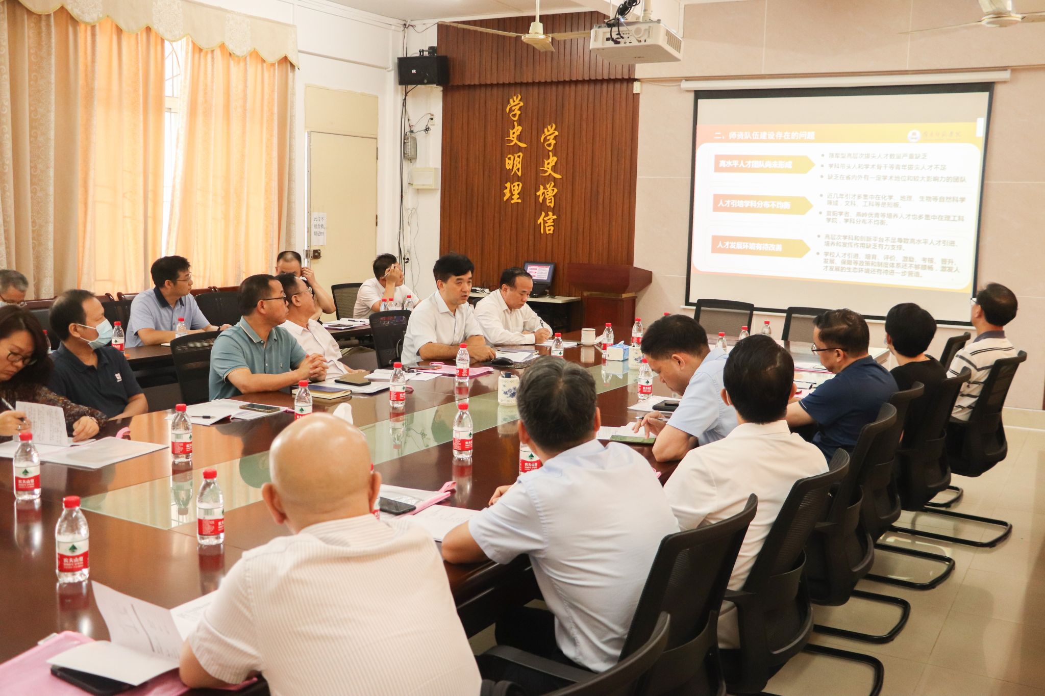 “高质量发展,要从自我做起,做有担当的人。”“在高质量发展中,二级学院的院长都是拼出来的。”“高质量发展的核心是人,要创新激励机制,通过教风、学风、校风打造来实现高质量发展。”“高质量发展离不开高质量服务……”当天上午和下午,与会人员围绕“以高质量党建引领学校高质量发展”“以治理体系与治理能力现代化推动学校高质量发展”等6个议题展开研讨,党办、校办、人事处、教务处、科研处、国交处等六个单位主要负责人分别代表各组作研讨交流汇报。