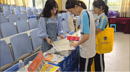 在座谈会上,我院领导围绕学校办学历史、办学特色、办学成果、人才培养等情况展开介绍,并着重就学校招生政策以及近年来学校毕业生就业、升学深造等方面数据进行详细讲解。同时,对学校创新班、公费定向师范生、中外合作办学项目等内容进行了具体说明,并表示希望同与会学校加强互动交流,进一步深化合作,热烈欢迎更多高中学子报考岭南师范学院。相关参会学校的领导和老师对我校佛山招生宣传队一行的到来表示热烈欢迎,他们纷纷表示,通过座谈交流对我校的办学实力与优势特色有了更加全面、深入的认识与了解,将会推荐更多的优质生源报考我校,并期待未来能够通过更多元化的合作形式,共同推动人才培养的质量不断迈向新的高度。在招生宣传现场展位上,队员们积极分发学校的招生手册和宣传资料,并结合前来咨询考生的成绩和兴趣特长等热情为考生和家长提供报考咨询与服务,耐心细致地答疑解惑。