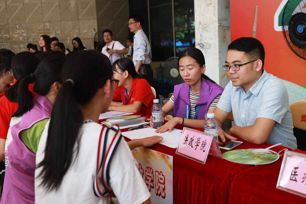 9月7日,迎新活动正紧锣密鼓地进行中。在迎新现场,除了各二级学院布置的入学登记大本营,特设的“绿色通道”咨询服务点也为新生提供了多种升学资助措施,全面护航新生顺利入学。