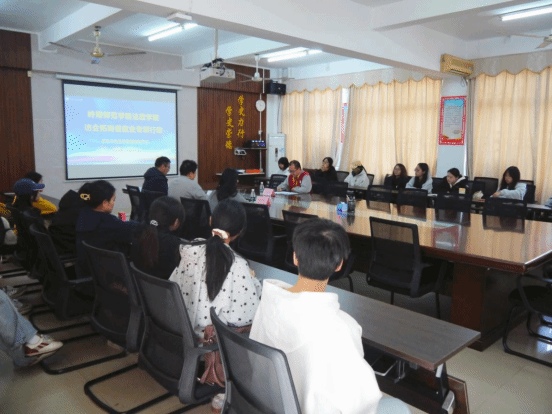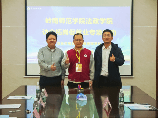 为深入贯彻落实党中央、国务院关于高校毕业生就业工作的决策部署,搭建校企合作交流平台,拓宽毕业生就业渠道,2025年12月28日,法政学院于弘雷楼313室开展2026届企业座谈暨招聘宣讲会议,茂名市电白区杨梅寄宿学校招生办校长林华海,岭南师范学院法政学院书记李德深、副书记易贤、辅导员老师黄诗娜以及学生代表出席此次会议。