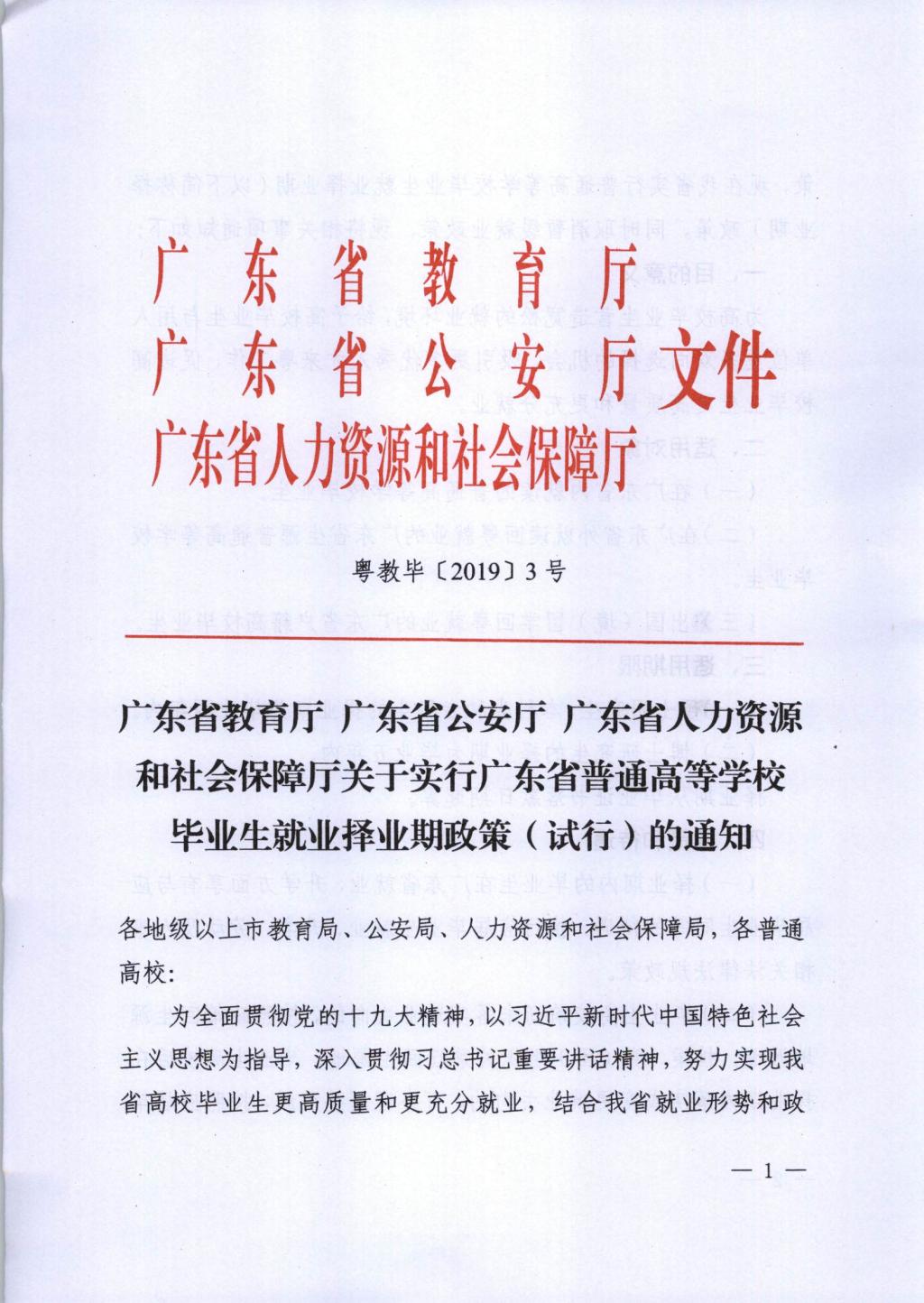 广东省教育厅 广东省公安厅 广东省人力资源和社会保障厅关于实行广东省普通高等学校毕业生就业择业期政策(试行)的通知